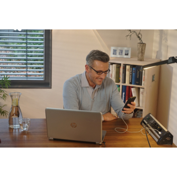 Degelijke en stabiele tafelstekkerdoos met USB oplaadaansluiting.
