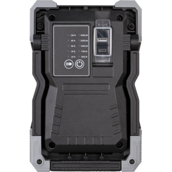 De mobiele LED-werkspot RUFUS 3000 MA van Brennenstuhl is een uiterst robuuste LED-werklamp met 30 W vermogen die aan de hoogste eisen voldoet. Met een behuizing van massief gegoten aluminium en extra randbescherming van hoogwaardig kunststof is hij geschikt voor zowel binnen- als buitengebruik. De werkspot heeft een ingebouwde oplaadbare batterij met een oplaadtijd van ca. 5 uur. Tijdens het opladen kan de schijnwerper blijven schijnen. Voorts is een schakelaar met lichtfunctie geïntegreerd, die een dimbaarheid van 10% - 25% - 50% - 75% - 100% mogelijk maakt. De ingebouwde LED's overtuigen door hun buitengewoon lange levensduur en hun speciale lichtverspreiding voor de verlichting van grote oppervlakken. De bouwlamp wordt opgeladen via de laadinterface en met behulp van de meegeleverde type A/C laadkabel.