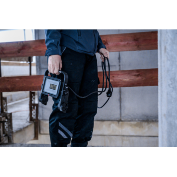 De JARO 3060 M LED bouwlamp is compact, licht van gewicht, heeft een opvouwbaar aluminium frame met kunststof beschermhoeken en een handige draaggreep. Dankzij de stof- en straalbestendigheid (IP65) is de lamp ideaal voor binnen- en buiten gebruik. Het biedt 2300lm helder werklicht en is energiezuinig dankzij de 20W LED. Het snel vergrendelingsmechanisme op het frame is ideaal om de schijnwerper met één hand te vergrendelen in elke gewenste positie. De JARO 3060 M wordt geleverd met een 2 meter lang snoer (H07RN-F 3G1.0) en heeft een veiligheidsglas voorscherm ter bescherming.