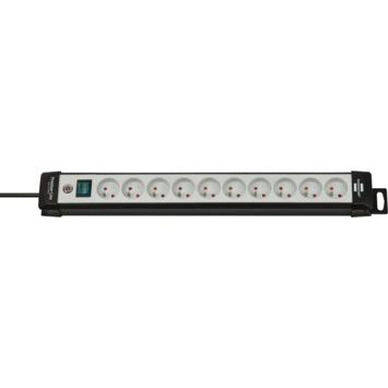Premium Line stekkerdoos 10-voudig zwart/lichtgrijs 3m H05VV-F 3G1,5 *FR/BE* * De stabiele topdesign stopcontactlijsten van zéér breukvaste speciaal kunststof. * Elegant, slank, tijdloos in hoogwaardig design. * Veiligheidsstopcontacten in 45° stand, ook voor haakse stekkers. * Verlichte veiligheidsschakelaar, tweepolig in-/uitschakelbaar. * Handige kabelhouder. * Voorzien van montagegaten. * Innovatief bevestigingsconcept. * Stopcontacten met hogere contactbescherming.