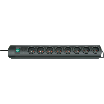 Primera-Line stekkerdoos 8-voudig zwart 2 m H05VV-F 3G1,5 *FR/BE* De design-stekkerdoos met slimme functies. * Met kabelclip voor het opbergen van overtollige kabel. * Kabeluitgang langs beide kanten mogelijk. * Ruime afstand tussen de stopcontacten. * Met montageogen voor wandmontage. * Verlichte veiligheidsschakelaar, tweepolig in-/uitschakelbaar. * Stopcontacten met hogere contactbescherming.