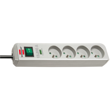 Eco-Line 13.500A stekkerdoos met overspanningsbeveiliging 4-voudig lichtgrijs 1,5m H05VV-F 3G1,5 *FR* * Beveiligd waardevolle apparaten tegen overspanning met een max. lekstroom tot 13.500 A. * Controlelamp voor correcte werking. * Verlichte veiligheidsschakelaar, tweepolig in-/uitschakelbaar. * Stopcontacten met hogere contactbescherming in handige opstelling van 45°.