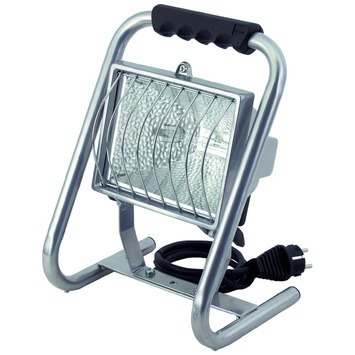 De Halogeen Brennenstuhl werklamp 500 W is ideaal voor elke klus en voor gebruik binnen of buiten dankzij de beschermingsgraad IP54. De halogeenarmatuur is traploos zwenk- en vergrendelbaar en zo richtbaar in vele posities. De armatuur van hoogwaardig aluminium heeft een coating voor een langere levensduur. De stabiele zilverkleurige stalen buisframe met ergonomisch voorgevormd handvat zorgt voor een comfortabel transport. De verchroomde veiligheidsgril en het beschermingspaneel uit gehard veiligheidsglas zorgen voor een minimaal risico op verwonden. In de armatuur passen halogeenlampen R7s uit de verschillende energieklassen B - E. De armatuur wordt geleverd met een lamp met energieklasse C. De armatuur is voorzien van een 5 meter rubberen neopreen aansluitkabel voor flexibel werken en verplaatsen. De lamp heeft een capaciteit van 500 W en een lichtstroom van 8545 lm. Met een lichtopbrengst van 21 lm per 1 W en een werktemperatuur van 2900 K heb je een aangenaam en comfortabel werklicht bijvoorbeeld tijdens een verbouwing.