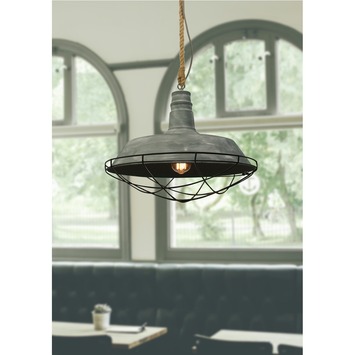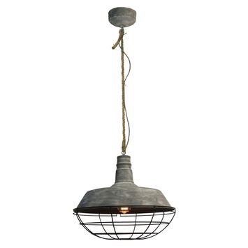 De hanglamp Rope is exclusief voor de E27 lichtbron. De hanglamp is gemaakt van metaal en heeft een industriële betonlook. De hanglamp is afgewerkt met een authentiek koord. De hanglamp heeft een diameter van 47 cm en heeft een verstelbare lengte van maximaal 131 centimeter.