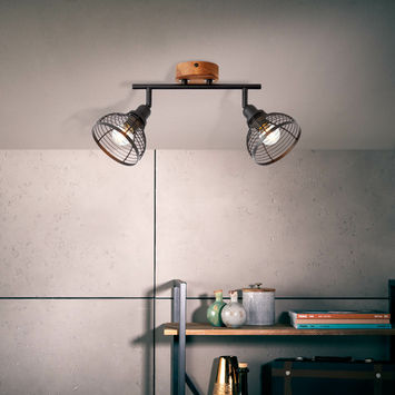 Brilliant opbouwspot Avia 2x E14 zwart/hout