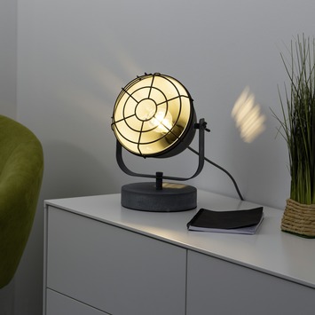 De Carmen tafellamp met grill van Brillant is een stoere lamp gemaakt uit metaal met een industriële betonlook. De halfronde lamp is richtbaar en daardoor uitzonderlijk multifunctioneel. Gebruik zowel voor directe als indirecte verlichting in je woonkamer, slaapkamer, enzovoort. Inclusief kabel van 170 centimeter lang en schakelaar. Exclusief lamp van 60 watt met een fitting E27. Brilliant is een Duits verlichtingsmerk met een uitgebreid gamma voordelige binnenverlichting en buitenverlichting. Energiezuinigheid, kwaliteit en een scherpe prijs staan centraal, net zoals bij GAMMA.