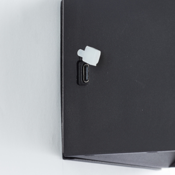 Via de usb-c aansluiting kan de lamp opgeladen worden.