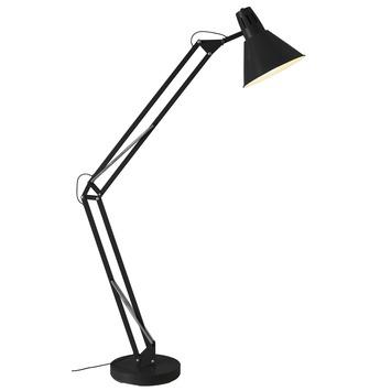 Decoratief en praktisch, de "WINSTON" vloerlamp is een mooie aanvulling voor uw leefruimte. Het kan worden gebruikt als leeslamp of als achtergrondverlichting. De "WINSTON" vloerlamp is ontworpen als een oversized tafellamp die de aandacht zal trekken in uw woonkamer. De eenvoud van de kleur past zich aan elke situatie aan en draagt bij aan de elegante sfeer van de ruimte. Met een hoogte van 1,8 meter kan het niet over het licht gezien worden. Het te verlichten zone kan specifiek worden aangepast door middel van het licht en de gewrichten. De kabel is ongeveer 1,8 meter lang.