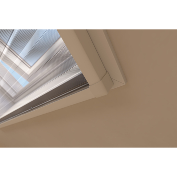 De Bruynzeel duoplissé raam S800 78x160 cm wit is een ideale oplossing voor dakramen die zowel insectenwering als verduistering biedt. Het geplisseerde zwarte gaas houdt muggen en vliegen buiten, terwijl het antracietkleurige verduisteringsdoek de kamer donker en koel houdt. Het honinggraat doek zorgt ervoor dat er geen zichtbare gaatjes te zien zijn waar licht doorheen komt waardoor je kamer volledig verduisterd kan worden.
