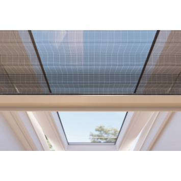 - Zwart geplisseerd gaas met witte aluminium profielen