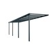 De terrasoverkapping bestaat uit antracietkleurige aluminium profielen en meerwandige polycarbonaat dakplaten met een dikte van 10mm. De overkapping is 732cm breed, 210cm diep. De staanders zijn 225cm hoog.