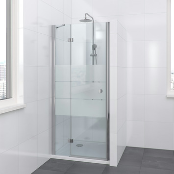 De Bruynzeel Vitro draaideur 90x195 cm links is zowel in een nis tussen 2 muren, als in combinatie met de Bruynzeel Vitro zijwand in een hoek te plaatsen. Deze Vitro draaideur draait alleen naar links. Bruynzeel heeft ook een rechtsdraaiende Vitro draaideur beschikbaar. De deur heeft een verstelbaarheid van 87 tot 91 cm wanneer deze in een nis wordt geplaatst en van 87,1 tot 99,1 wanneer deze in combinatie met een zijwand wordt geplaatst. De scharnierende deur draai je uitsluitend naar buiten. Te plaatsen op een douchebak, dorpel of direct op de tegelvloer..De Vitro-serie van Bruynzeel is een stijlvolle en moderne frameloze doucheserie met aluminium profielen in glanzend chroom in combinatie met een hoogglans verchroomde deurknop. Door het ontbreken van profielen is deze serie zeer onderhoudsvriendelijk. Het assortiment bestaat uit draaideuren 90 en 100 cm, een hoekinstap, kwartrond en zijwand 90 en 100 cm. De douchecabines zijn 195 cm hoog en voorzien van 6 mm dik veiligheidsglas dat is gedecoreerd met een satinato bedrukking in drie brede banen.