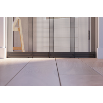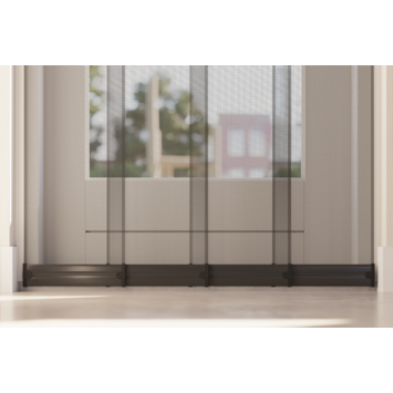 Het gepatenteerde railsysteem zorgt voor een vlotte bediening, terwijl de verzwaringsplaten met stootrubbers de lamellen stabiel houden. De combinatie van een lichtgrijze bovenrail, antracietkleurige verzwaringsplaten en zwarte lamellen geeft de hor een neutrale uitstraling. De complete set wordt geleverd met alle benodigde onderdelen en is geschikt voor dagelijks gebruik, ook in huishoudens met kinderen en huisdieren.