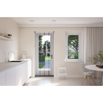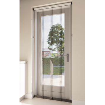 De Bruynzeel lamellenhor deur S700 95x235 cm grijs is ontworpen om insecten buiten te houden zonder het gebruik van de deur te belemmeren. De vier overlappende lamellen maken het mogelijk om vlot door de hor te lopen. Na het passeren sluiten de lamellen automatisch, zodat frisse lucht binnenkomt maar insecten worden tegengehouden. Met het koord kunnen de lamellen eenvoudig opzij geschoven worden wanneer je een vrije doorgang wenst.