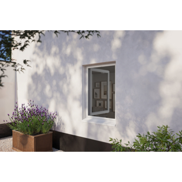 Met de telescopische aluminium profielen stel je het vliegenraam eenvoudig op maat zonder zagen. Het zwarte glasfiber gaas zorgt voor luchtcirculatie terwijl insecten buiten blijven. Het vliegenraam kan zowel links- als rechtsdraaiend worden gemonteerd en is geschikt voor kunststof kozijnen bij naar binnendraaiende ramen. De borstels in het frame voorkomen beschadigingen aan het kozijn.