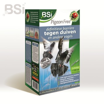 Pigeon free van BSI is een pakket met 6 strips van elk 25 cm voor een totale lengte van 150 cm met daarop pinnen. Deze strips kan je gemakkelijk plaatsen op plekken waar duiven en andere vogels voor overlast zorgen. De pinnen zorgen ervoor dat de vogels niet meer kunnen landen en voorkomen daardoor veel overlast en duivenpoep. De strips zijn eenvoudig vast te kitten of te schroeven (schroefgaten reeds voorzien). Gebruik biociden veilig. Lees vóór gebruik eerst het etiket en de productinformatie.