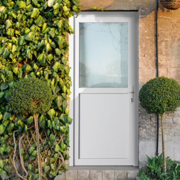 Buitendeur Esterno PVC E01 halfglas wit rechts 98X218 cm