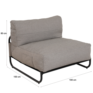 Met afmetingen van 80 cm hoog, 100 cm breed en 100 cm diep, is de sofa compact en biedt hij toch voldoende ruimte voor comfortabele ontspanning. De set bevat grijze kussens die 32 cm dik zijn voor zowel het zit- als rugkussen, wat zorgt voor extra comfort tijdens je momenten van ontspanning.