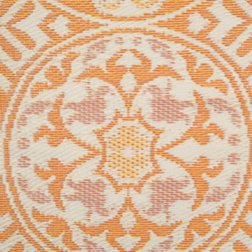 Dit Okina buitentapijt in oranje mix geeft je terras of balkon meteen een warme en vrolijke toets. Het tapijt is gemaakt uit polypropyleen en heeft stevige geweven vezels die je eenvoudig reinigt met water. Dankzij de goede warmtebestendigheid blijft het mooi vlak liggen, zelfs tijdens zonnige dagen.