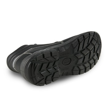 Budgetvriendelijke, lichtgewicht hoge S1P SRC schoen in splitleder. Materiaal buitenzool: PU/PU. Antiperforatiezool: staal. Versterkte neus: staal. Hoofdkleur: zwart. Geschikt voor middelzware toepassingen, distributiesector, magazijnwerk en onderhoudsdiensten.