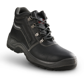 Budgetvriendelijke, lichtgewicht hoge S1P SRC schoen in splitleder. Materiaal buitenzool: PU/PU. Antiperforatiezool: staal. Versterkte neus: staal. Hoofdkleur: zwart. Geschikt voor middelzware toepassingen, distributiesector, magazijnwerk en onderhoudsdiensten.