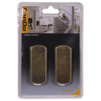 De CanDo eindkap voor trapleuning 27X70 mm oud brons (2 stuks) is een vlakke, ovaalvormige metalen eindkap in de kleur oud brons. Deze eindkappen zijn per 2 stuks verpakt in een blister. Het product is geschikt voor gebruik binnenshuis in droge ruimten en kan worden toegepast op alle ovalen CanDo trapleuningen 27 x 70 mm in de diverse lengten. De eindkappen dienen met lijm of dubbelzijdig plakband (niet meegeleverd) te worden bevestigd aan de trapleuning. Volg de aanwijzingen op de achterzijde van de verpakking van de gekozen eindkappen voor een correcte en veilige installatie.