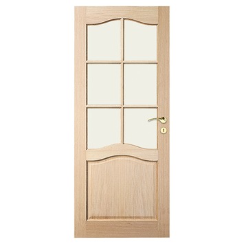 Op zoek naar een klassieke/landelijke binnendeur? Dan is deze mooie deur van CanDo wellicht iets voor jou! De binnendeur heeft een totale afmeting van 201,5x83 cm en is gemaakt uit een MDF paneel met een eiken fineer. De deur is voorzien voor het plaatsen van 6 vensters, aan jou de keuze of je gaat voor blank glas (artikel 258344) of mat glas (artikel 258337).