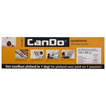 Je plafond vernieuwen doe je in een handomdraai met dit spanplafonddoek van CanDo. Het powerdoek voor plafonds bezorgt je een naadloos plafond in één dag, want je hoeft niet eens je oude plafond te verwijderen. Het geweven doek is afgewerkt met een matte PU-coating in de kleur wit. Sterk, onderhoudsvriendelijk én zeer duurzaam. Ook geschikt voor badkamers. Goed om te weten: de doekafmeting is 140 op 200 centimeter en geschikt voor maximale plafondafmetingen van 120 op 180 centimeter. Tip: gebruik in combinatie met het spangereedschap en de spanprofielen van hetzelfde merk. Beide eveneens verkrijgbaar in onze webshop.