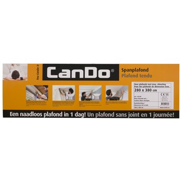 Je plafond vernieuwen doe je in een handomdraai met dit spanplafonddoek van CanDo. Het powerdoek voor plafonds bezorgt je een naadloos plafond in één dag, want je hoeft niet eens je oude plafond te verwijderen. Het geweven doek is afgewerkt met een matte PU-coating in de kleur wit. Sterk, onderhoudsvriendelijk én zeer duurzaam. Ook geschikt voor badkamers. Goed om te weten: de doekafmeting is 300 op 400 centimeter en geschikt voor maximale plafondafmetingen van 280 op 380 centimeter. Tip: gebruik in combinatie met het spangereedschap en de spanprofielen van hetzelfde merk. Beide eveneens verkrijgbaar in onze webshop.