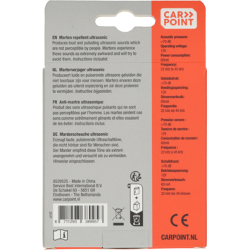 marters met de Carpoint marterverjager. De Carpoint marterverjager produceert