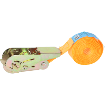 25millimeter. Met de ratel spant u de band makkelijk zonder dat u zelf veel
