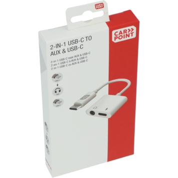 De Carpoint 2 in 1 adapter van USB-C naar USB-C en 3,5 mm Audio Jack Adapter is de perfecte oplossing voor een toestel met een USB-C aansluiting, maar zonder 3,5 mm headset aansluiting. De Universele USB-C naar USB-C en Audio Jack Adapter maakt van de standaard USB-C poort op het toestel een nieuwe USB-C poort en 3,5 mm Audio Jackaansluiting. Dus tegelijkertijd het toestel opladen, muziek luisteren of een telefoongesprek voeren met een aangesloten headset of oortjes.
