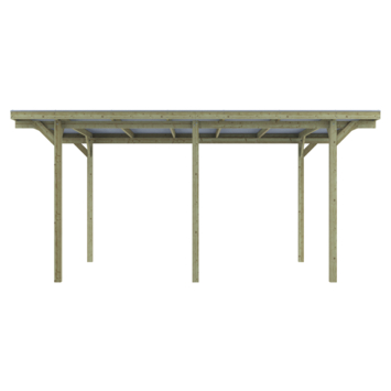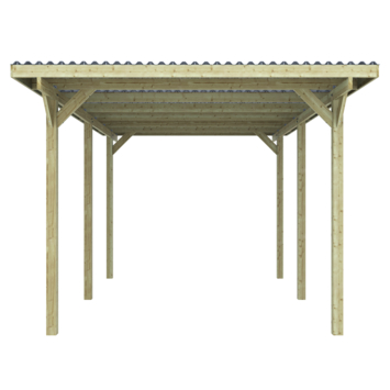 De dakbedekking bestaat uit zes stevige grijze golfplaten van PVC, die zorgen voor robuuste bescherming tegen verschillende weersomstandigheden. De opbouwbeschrijving zit bij de verpakking, en het benodigde montagemateriaal voor de houten onderdelen en de bevestiging van de dakplaten is inbegrepen. Houd er rekening mee dat de voetsteunen voor de houten staanders niet bij de levering zitten, maar verder is alles inbegrepen voor een snelle en eenvoudige montage. Stal je auto veilig en droog met de Carport Eagle!