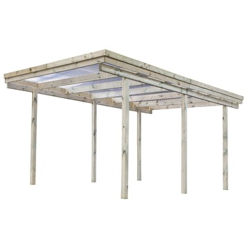 Met een carport bescherm je jouw auto tegen overmatig zonlicht, vorst en regen. De carport Princess is gemaakt van geïmpregneerd grenen en heeft transparante plexiglas dakplaten. De carport is 500 cm lang, 300 cm breed en 215 cm hoog. Deze vrijstaande carport steunt op 6 palen van 9x9 cm. De carport Princess is ook verkrijgbaar als aanbouwmodel. Kortom, de carport Princess is de ideale oplossing om jouw auto af te schermen van weersinvloeden.