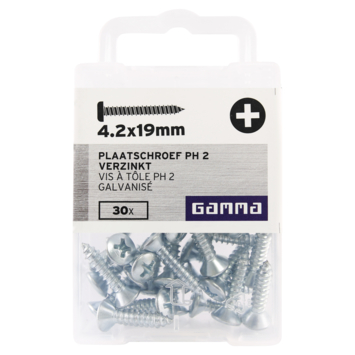 Met Gamma zelftappers bevestigd u eenvoudig plaatmaterialen en plastic panelen op hout. Een zelftapper snijdt zijn eigen schroefdraad als deze wordt ingeschroefd. Deze 4,2X19 Verzinkt zelftapper heeft een lenskop voor een eenvoudige bevestiging. De vorm van deze kop laat een mooie afwerking zien. Zelftappers worden ook carrosserie schroef en carrosserie plaatschroef genoemt.
