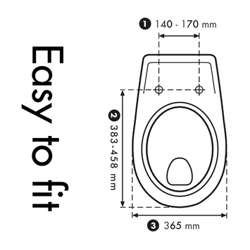 Door de verstelbaarheid in de scharnieren past deze wc-bril op de meeste gangbare toiletpotten met D-vorm, toch raden we je aan de lijntekening goed te bekijken zodat hij netjes past op jouw pot. Tenslotte monteer je de zitting met het slimme 'Topfix' bevestigingssysteem eenvoudig en snel vanaf de bovenkant. Makkelijker bestaat niet.