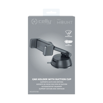 De Celly Mount EXT Smartphone houder met zuignap voor op de voorruit of dashboard. De arm is 180° instelbaar en 2,5 cm te verlengen. Automatische vergrendelingsfunctie houdt de smartphone vast. 360° draaibare bevestiging voor landscape of portrait mode. Geschikt voor alle smartphones tot 6,5 inch.