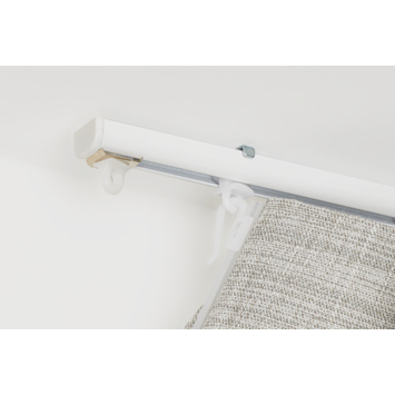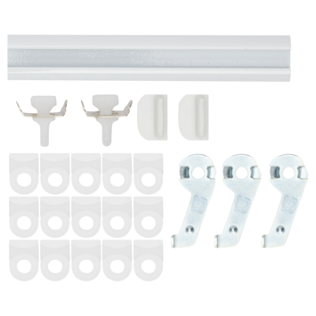 De gordijnrail Subtile wit 150 cm is een slank vormgegeven gordijnrail welke uitstekend past in elk interieur. Het unieke van deze rail is de mooie slanke afwerking en "onzichtbare" montagesteunen. Het aluminium materiaal is gelakt in een witte finish. Deze gordijnrail is geschikt voor plooigordijnen en is heel eenvoudig op maat te maken met een ijzerzaag. Deze rail wordt geleverd met 15 runners, 3 plafondsteunen, 2 eindstoppers en 2 eindkapjes. De meegeleverde runners glijden soepel door de rail en de rail bevestig je met de bijgeleverde plafondsteunen aan je plafond. De steunen zijn na montage bijna niet meer zichtbaar. Met deze complete set heb je alles in huis om je gordijn makkelijk en snel te installeren.