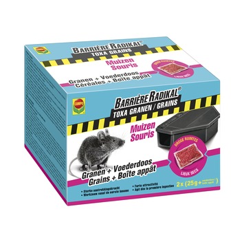 Compo Barrière Radikal Toxa graantjes tegen muizen 2 x 25 g + voederdoos