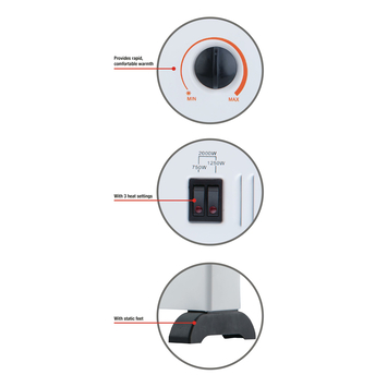 Snel verwarmen? Doe het met deze convectorkachel. De goedkope convectorkachel werkt op elektriciteit en heeft een maximaal vermogen van 2000 watt. Deze elektrische verwarming beschikt over 3 standen, een regelbare thermostaat en een overhittingsbeveiliging. De convector is ideaal om bij te warmen op extra koude dagen of als hulpmiddel wanneer je verwarming het onverwacht laat afweten.