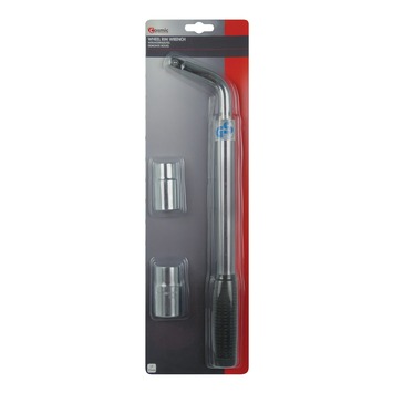 De Cosmic wielmoersleutel 17/19/21/23mm is een wielmoersleutel voorzien van telescoopsteel en veiligheidspen. Met de wielmoersleutel kan je gemakkelijk en snel wielmoeren losdraaien. De lange arm van de hefboom (500mm) zorgt ervoor dat de wielmoeren makkelijker kunnen worden losgedraaid. De Cosmic wielmoersleutel 17/19/21/23mm wordt geleverd met dubbelzijdige doppen voor 17 en 19mm-21 en 23mm, passend op bijna alle autowielen. Dankzij de telescoopsteel is de Cosmic wielmoersleutel 17/19/21/23mm ruimtebesparend.