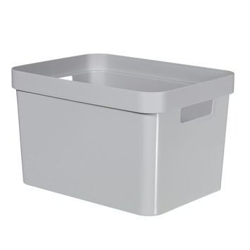 Curver Infinity box - 17 l in de kleur grijs is geinspireerd op Scandinavische design. De comfortabele handgrepen kan je makkeleijk de doos tillen en door het gladde plastic kan je gemakkelijk de box schoonmaken. De deksel is bij deze lijn los verkrijgbaar en met deksels zijn ze gemakkelijk te stapelen. Een ware toevoeging aan iedere huiskamer, slaapkamer, speelkamer etc.