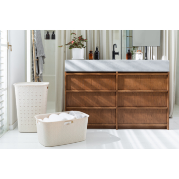 De Curver Softex wasmand 45L biedt de perfecte mix van stijl en functionaliteit. Verzamel je wasgoed in deze elegante mand met een uniek Softex-design, een echte eyecatcher in elke badkamer. De praktische deksel opent tot 110 graden en kan ook los gebruikt worden, wat het vullen en legen van de mand extra gemakkelijk maakt. Met de handige handgrepen verplaats je de mand moeiteloos door het hele huis. Combineer de Softex wasmand met de lage variant voor een complete en stijlvolle wasruimte. Laat Softex jouw wasroutine net dat beetje extra geven!