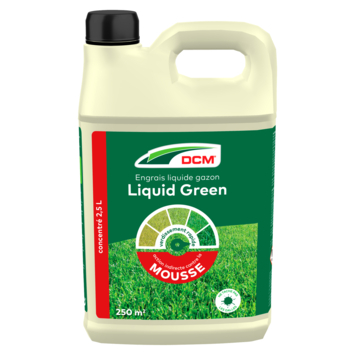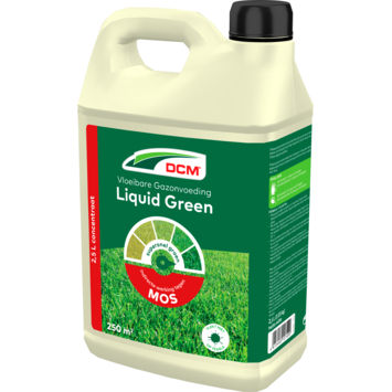 DCM Liquid Green 2,5 liter is een snelwerkende gazonmeststof, rijk aan stikstof voor een mooie, dichte grasmat. Indirecte werking tegen mos: een dichte grasmat beperkt de groei van mos en onkruid. Verrijkt met ijzer voor een diepgroen gazon.
