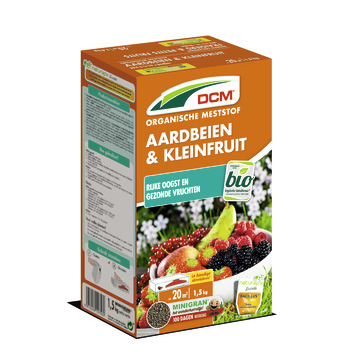 Deze meststof stimuleert de groei en bloei van aardbeiplanten en allerlei soorten kleinfruit. Rijk aan fosfor en verrijkt met kalium voor dikke en smakelijke vruchten. 100% natuurlijk en dus toepasbaar in de biotuin. Gebruik biociden veilig. Lees vóór gebruik eerst het etiket en de productinformatie.