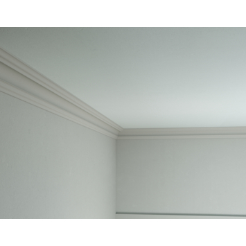 De Decoflair D8 sierlijst heeft een formaat van 50 bij 50 millimeter en heeft een convexe vorm met strakke lijnen. Dat betekent dat de lijst bol naar buiten loopt en tegelijk voor structuur en schaduw zorgt. Zo krijgt je kamer meer diepte. Je kunt de lijst gebruiken om kleine scheurtjes of oneffenheden aan het plafond netjes weg te werken.