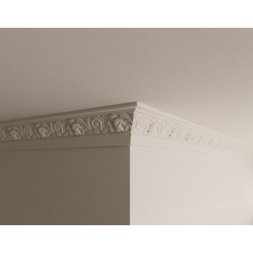 De Decoflair E25 sierlijst heeft een sierlijk profiel met details die zijn geïnspireerd op vormen uit de natuur. Dat geeft je kamer een klassieke uitstraling. Je gebruikt de lijst als overgang tussen muur en plafond, maar ook om beschadigingen of oneffenheden netjes weg te werken.