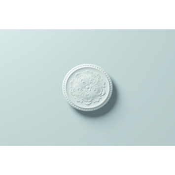 De rozet is gemaakt van polyurethaan, een stevig maar licht materiaal. De witte kleur is een ideaal startpunt voor verfwerk. Je kunt hem schilderen met de verf die je al in huis hebt. Zo stem je kleur en uitstraling naadloos af op je plafond of lamp. Het textuurpatroon maakt het geheel licht gedetailleerd zonder te druk aan te voelen.