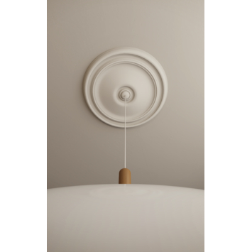 De Decoflair M71 rozet is wit en al voorzien van grondverf. Dat betekent dat je hem alleen nog maar in jouw gewenste kleur hoeft te schilderen. Dankzij het eenvoudige ontwerp past hij goed in een moderne inrichting, maar je kunt hem ook gebruiken als basis voor iets creatievers. Combineer hem bijvoorbeeld met andere elementen voor een opvallend detail op het plafond.
