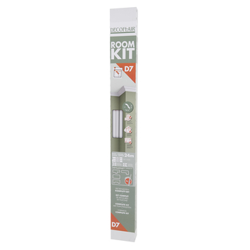 Met de Decoflair sierlijsten Roomkit D7 40×45 mm krijg je een doos met voorgezaagde lijsten en de juiste hoeveelheid lijm om hoeken tussen wand en plafond netjes af te werken. Het pakket bevat sierlijsten uit polystyreen met voorgesneden hoeken en lijm.